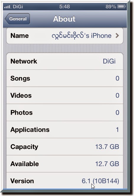 General >> About ကေန ဝင္ၾကည့္ရင္ ေအာက္ကပံုေလးအတိုင္း iOS ဗါးရွင္းကို
